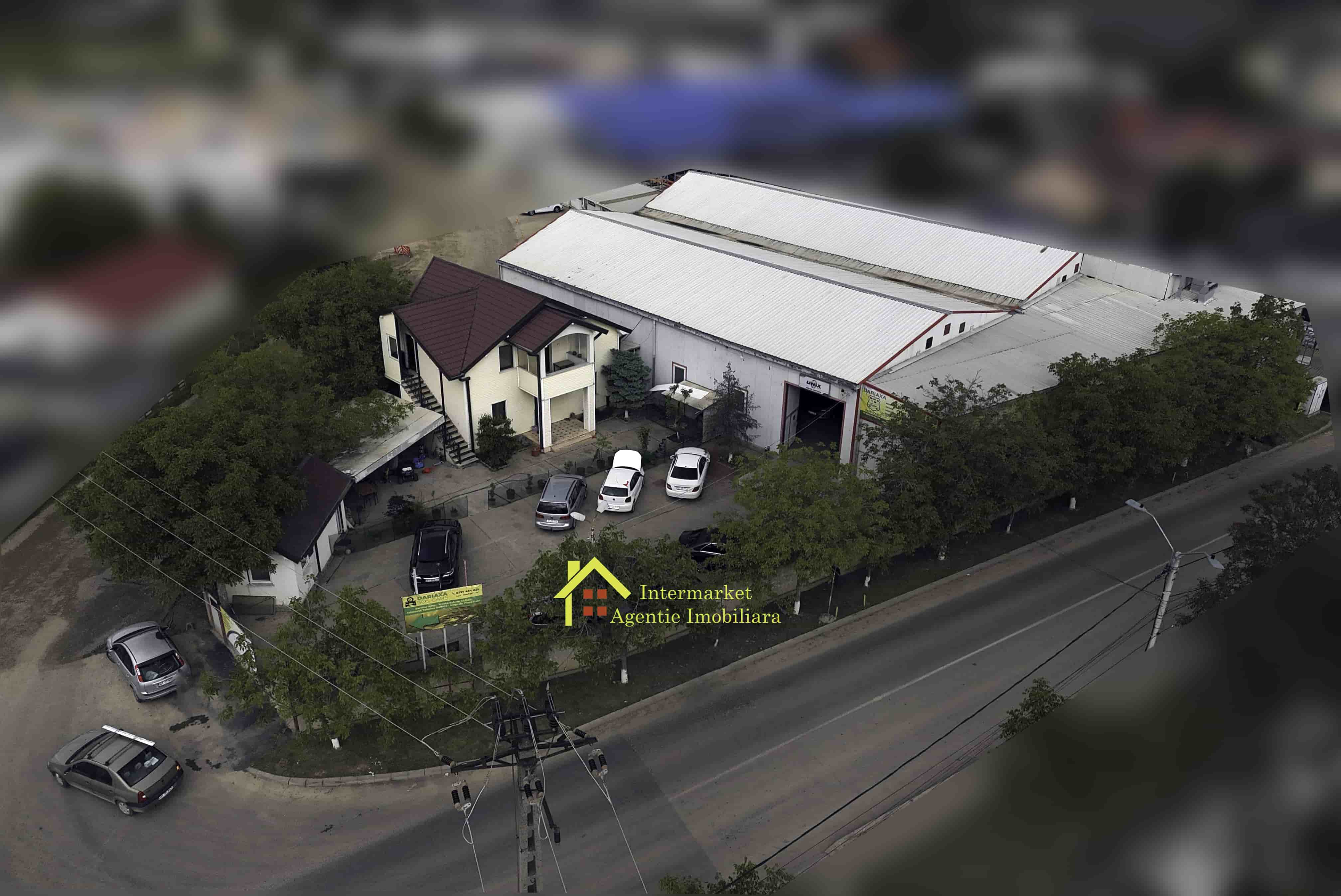 Agentia imobiliara Intermarket va ofera spre vanzare acest imobil cu suprafata totala de 1854 mp, cu deschidere la strada si alcatuit din : curte interioara – parcare, cabina portar cu suprafata de 15 mp, casa tip vila cu suprafata utila de 128 mp, plus hala spatioasa cu suprafata de 995 mp care dispune de spatiu de birouri, vestiar, grup sanitar.
